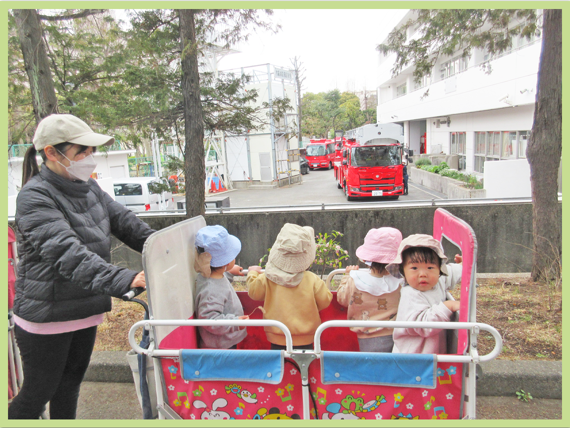 0歳児クラス 活動内容「園周り散策・避難訓練」