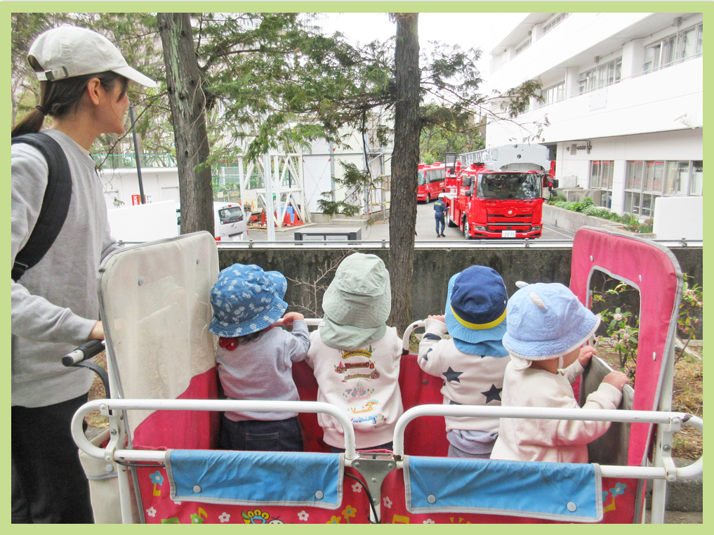 途中、消防署の裏を通った際に、消防車を見て大興奮でした。