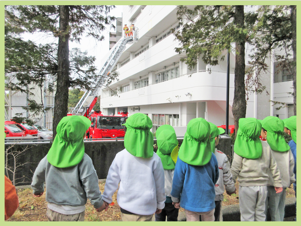 体力に自信がついてきて、少し距離のある公園まで散歩に行くことが出来るようになってきたこどもたち。今回は、都堀公園を通って平和の森公園の広場まで遊びに行きました。散歩道では、はしご消防車の訓練を見たり、公園内に咲く花を見たりして散策しました。