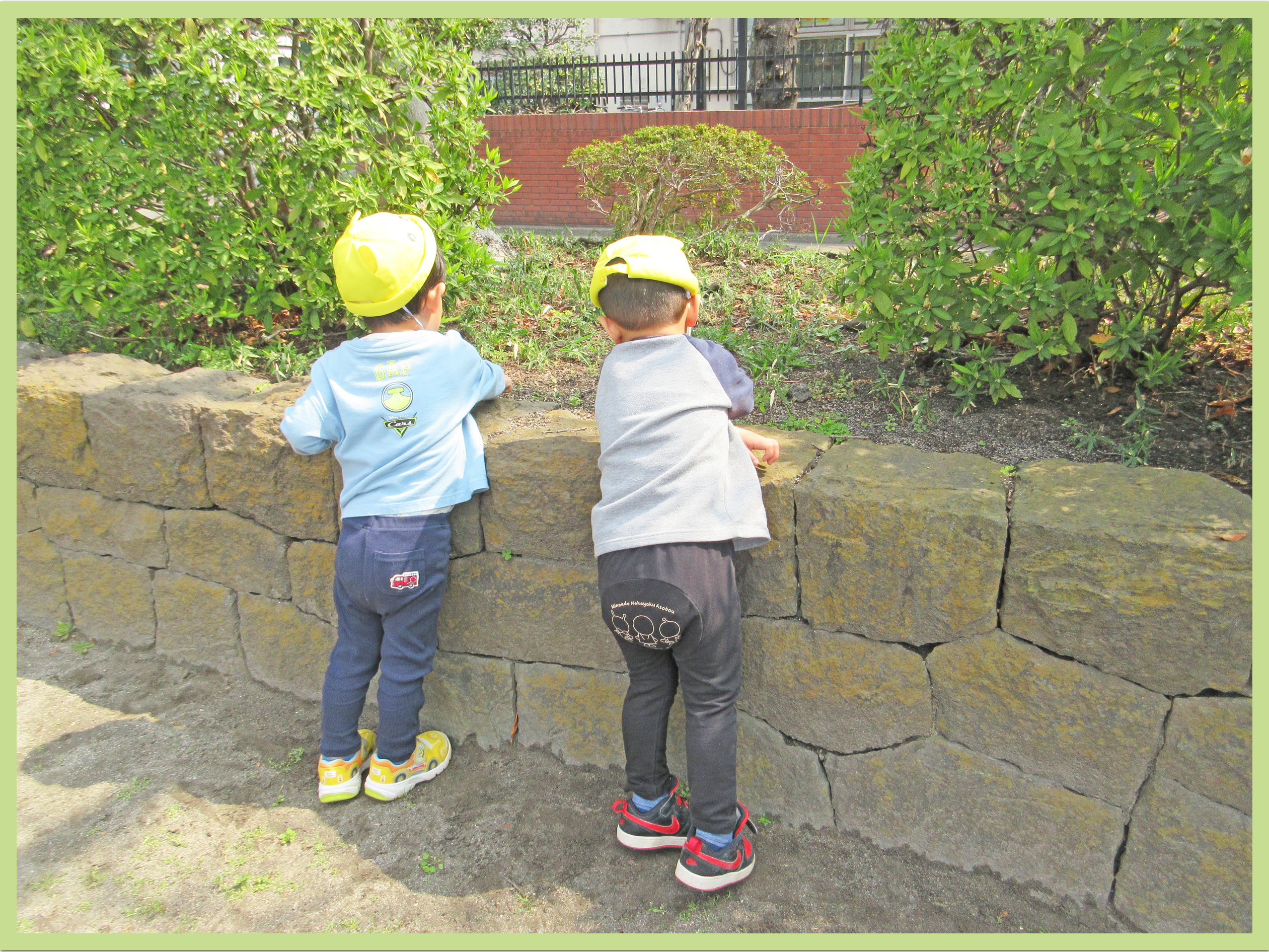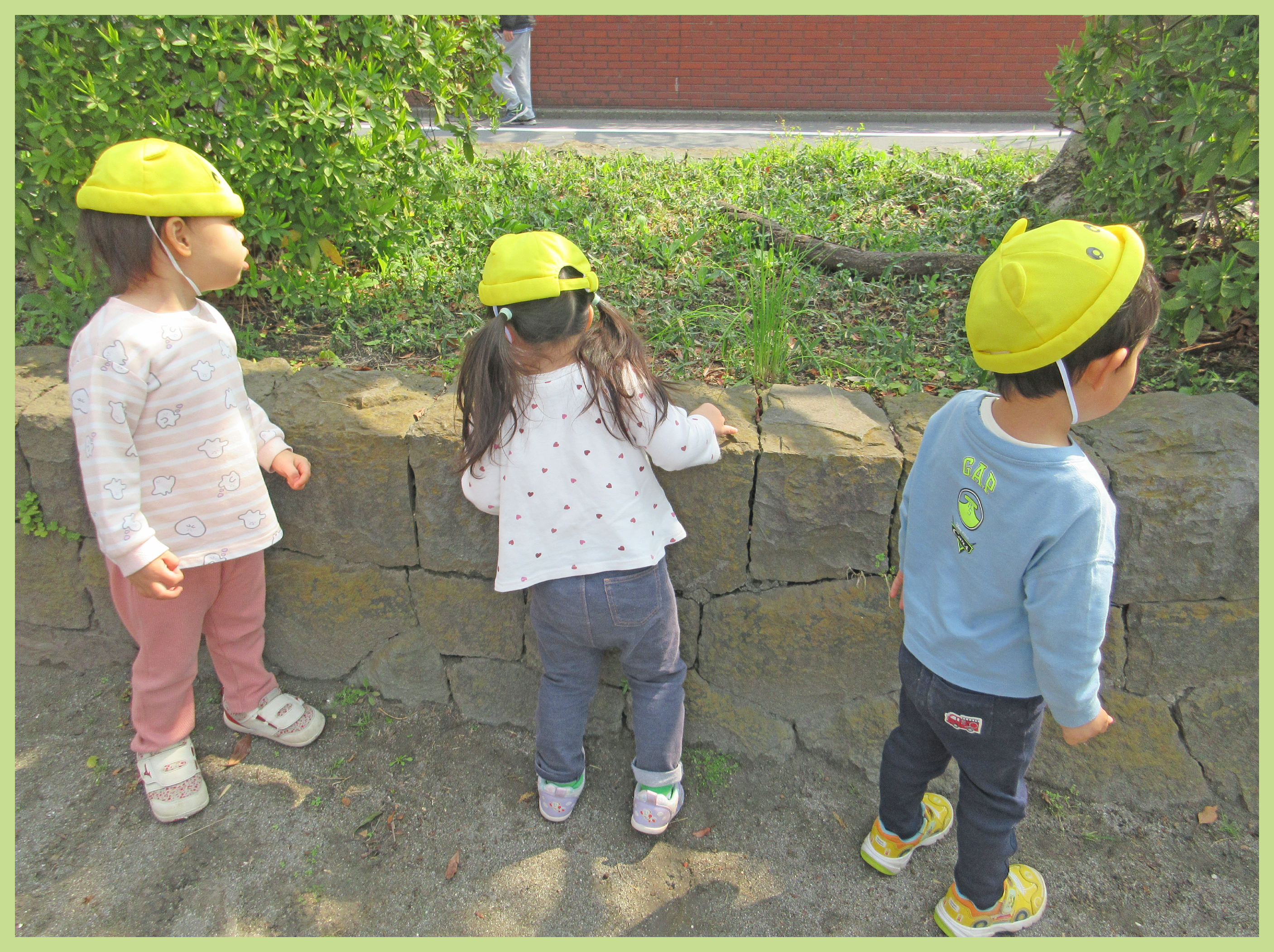 東一公園で散策を楽しみました。いつもはどんぐり探しに夢中なこどもたちですが、今日は保育者の「アリさんいるかな」の一言で一斉に虫探しをしていました。「あり、いた」「せんせ、みてみて」と嬉しそうに教えてくれるこどもたち。