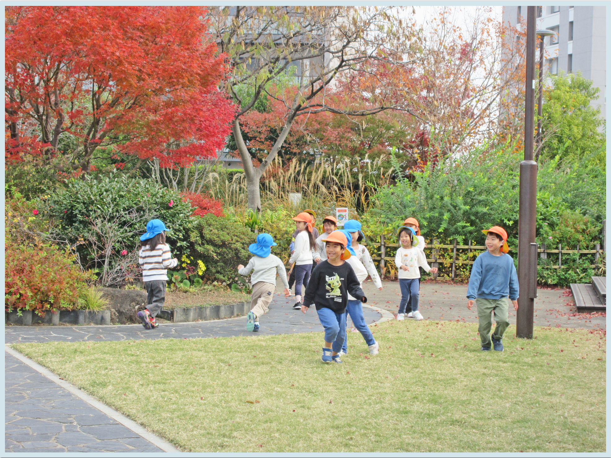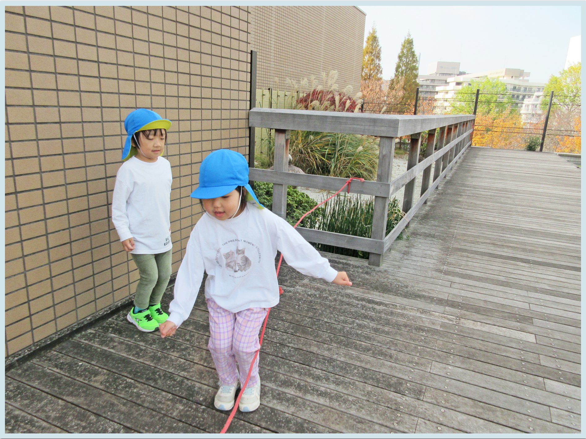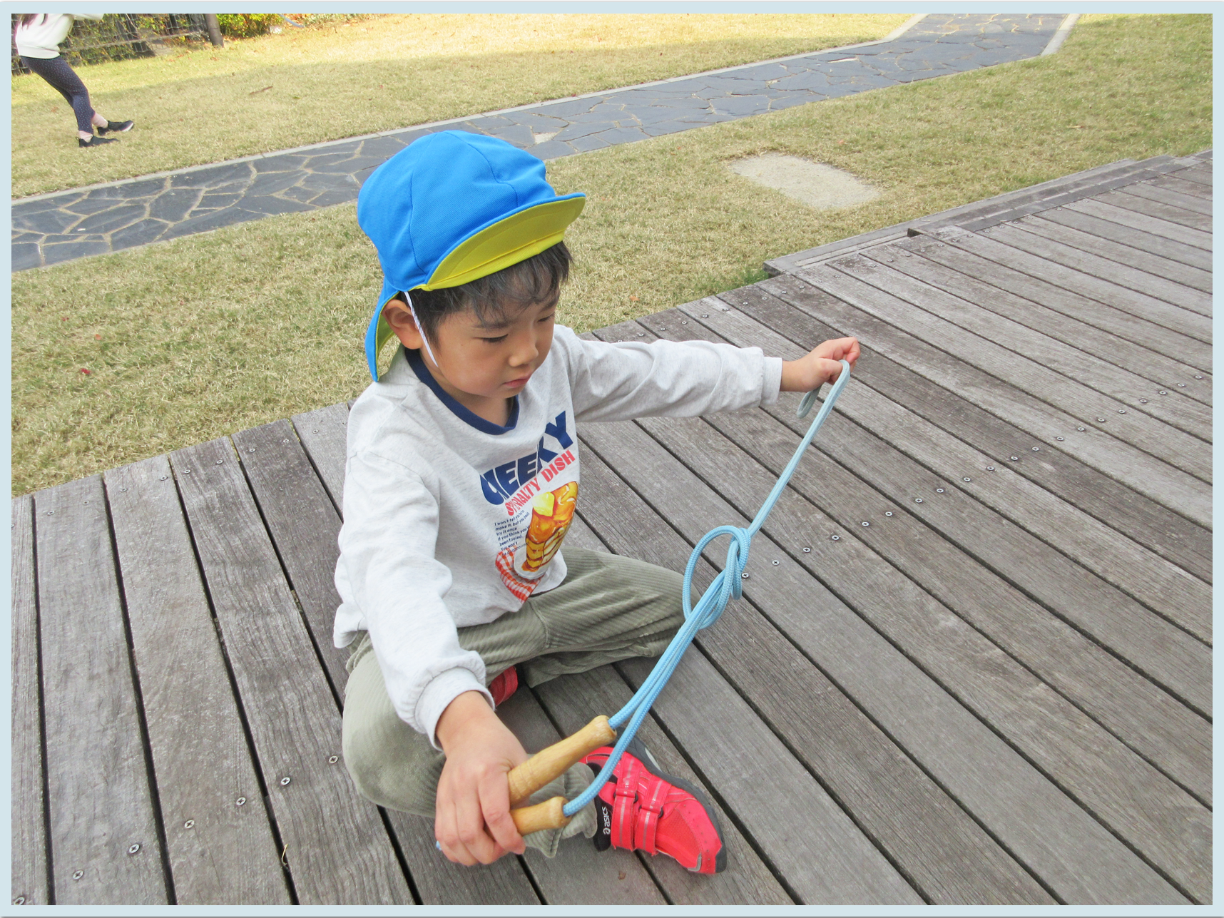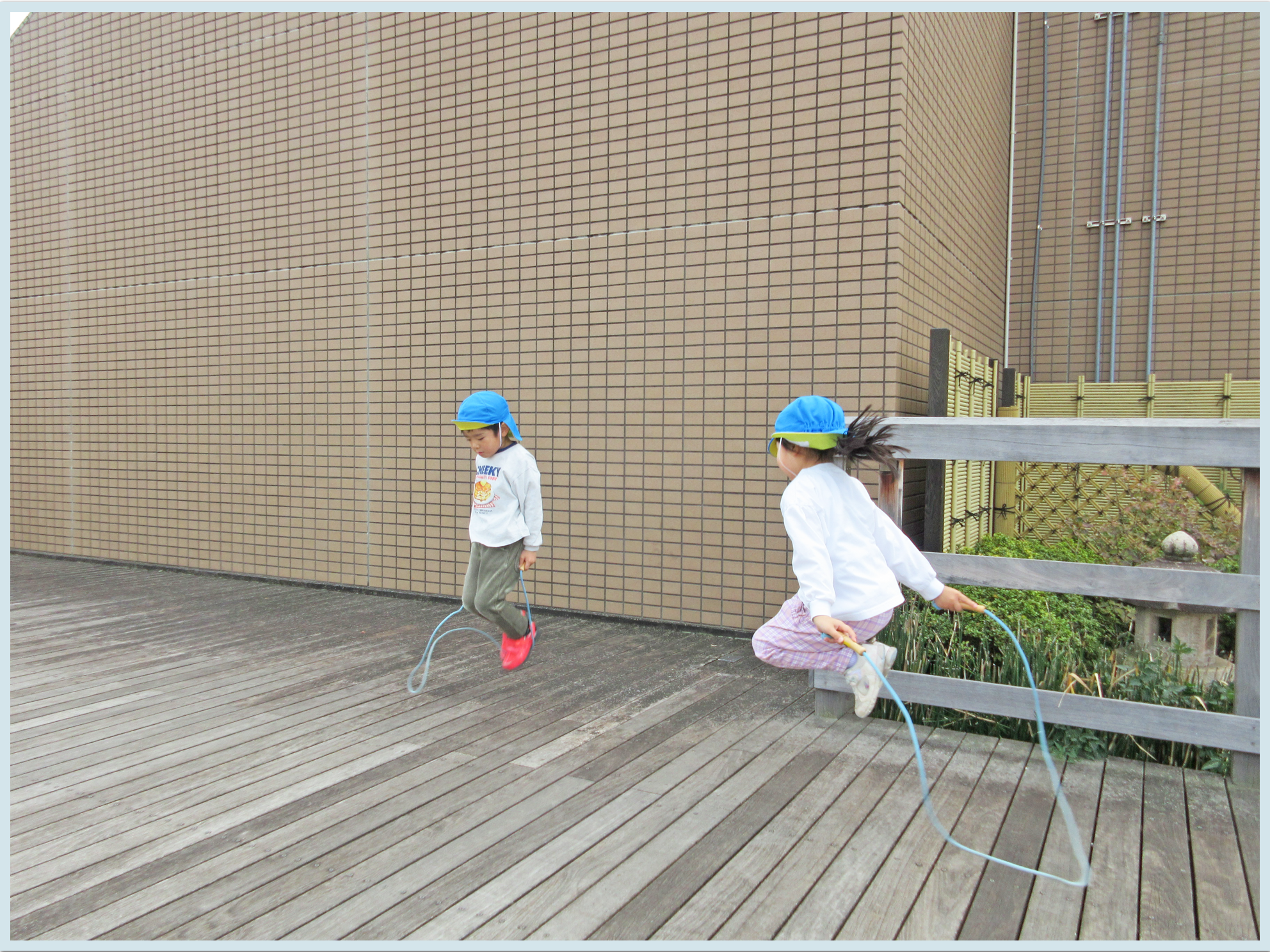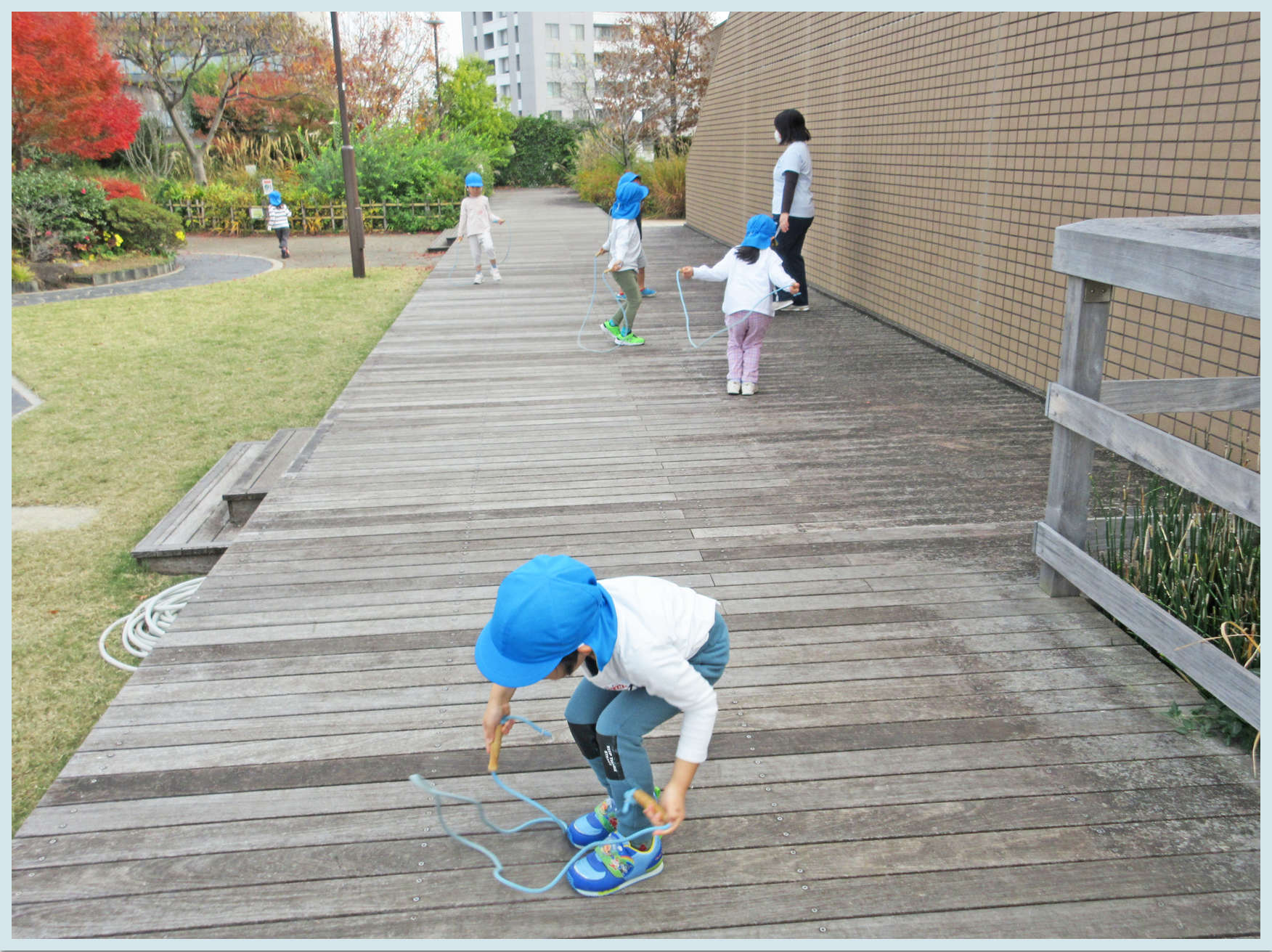 練習後は、海上公園の中庭園で縄跳びや歩き鬼をしました。