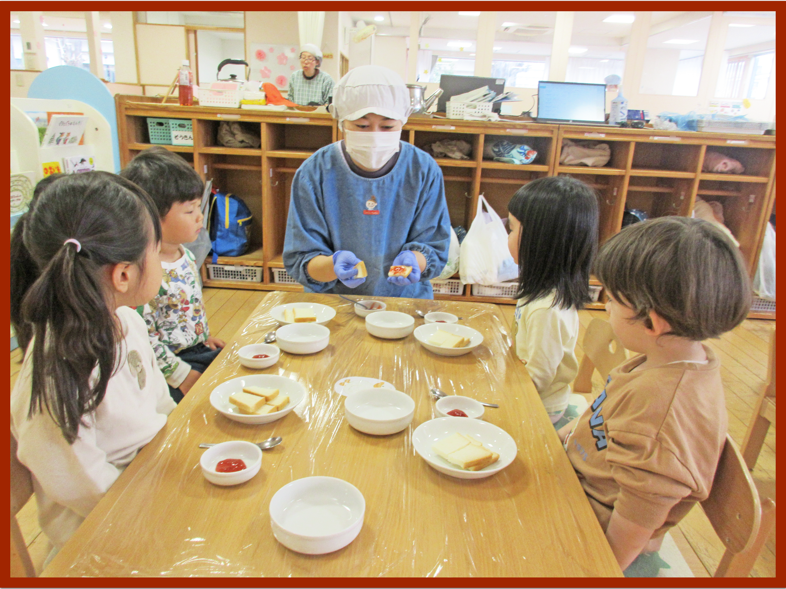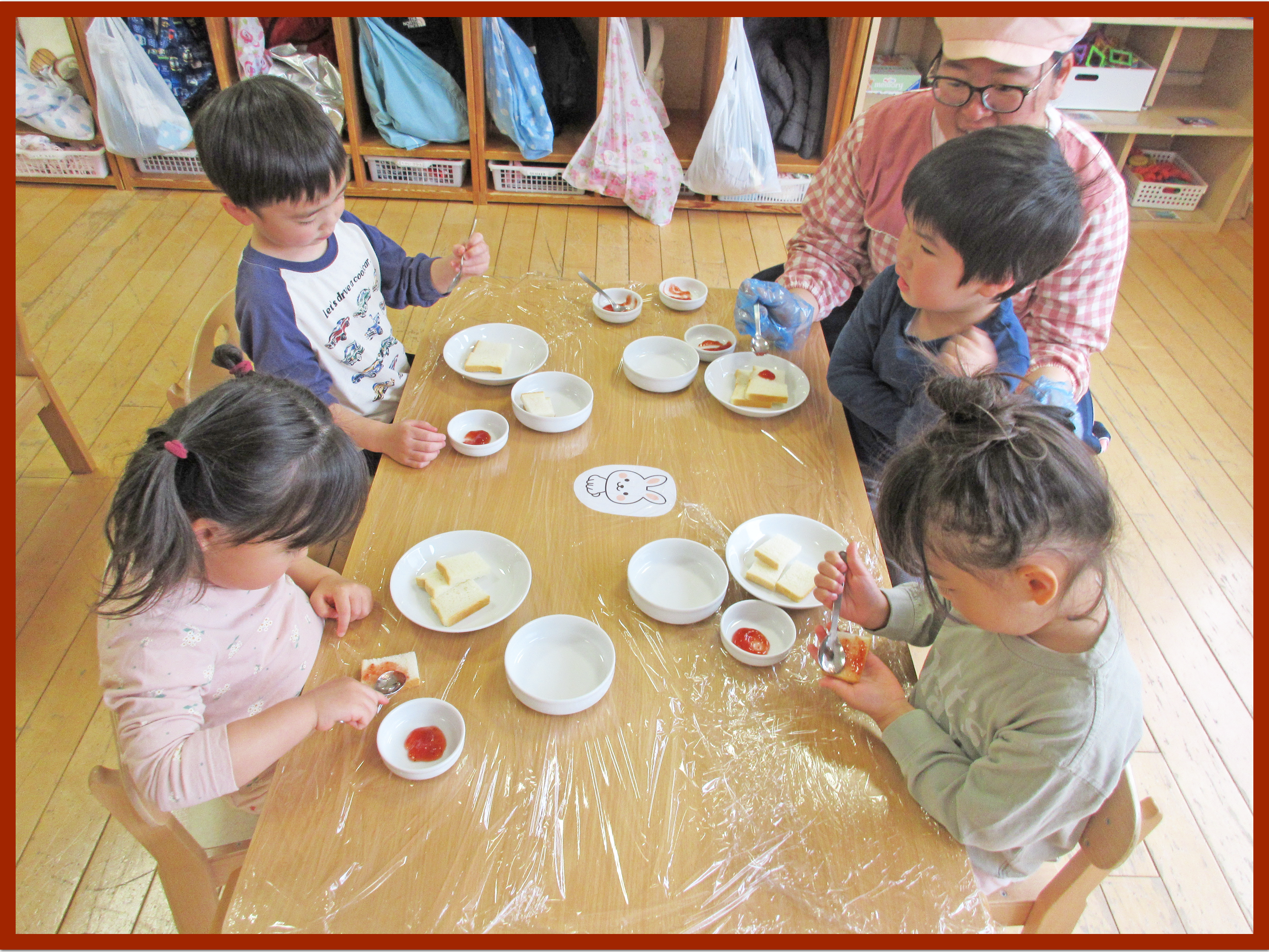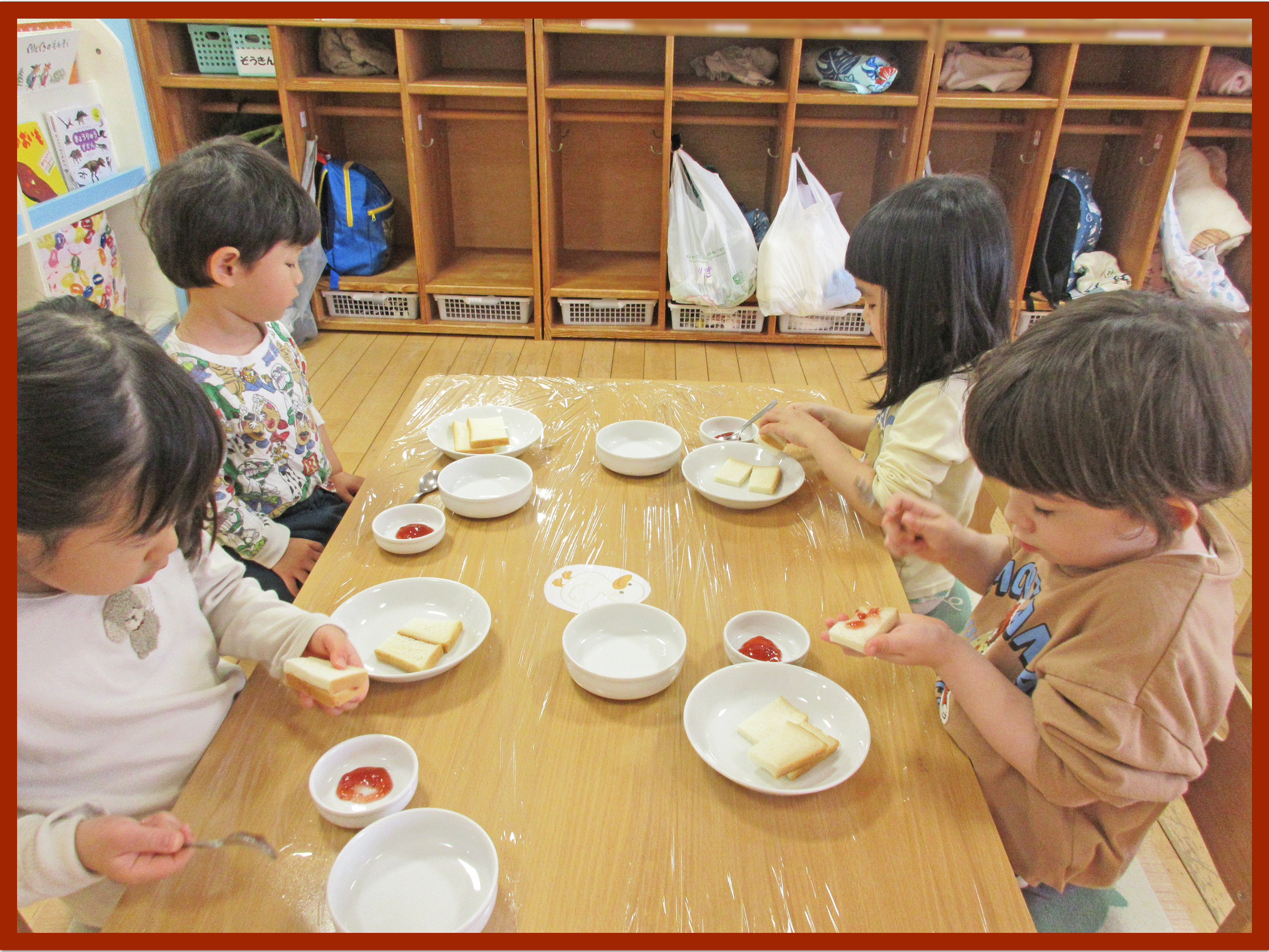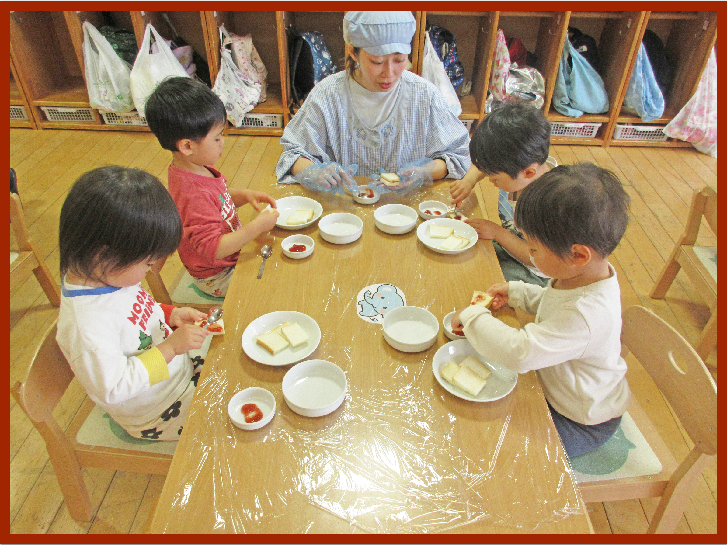 2歳児 はな組 ジャムサンド作り