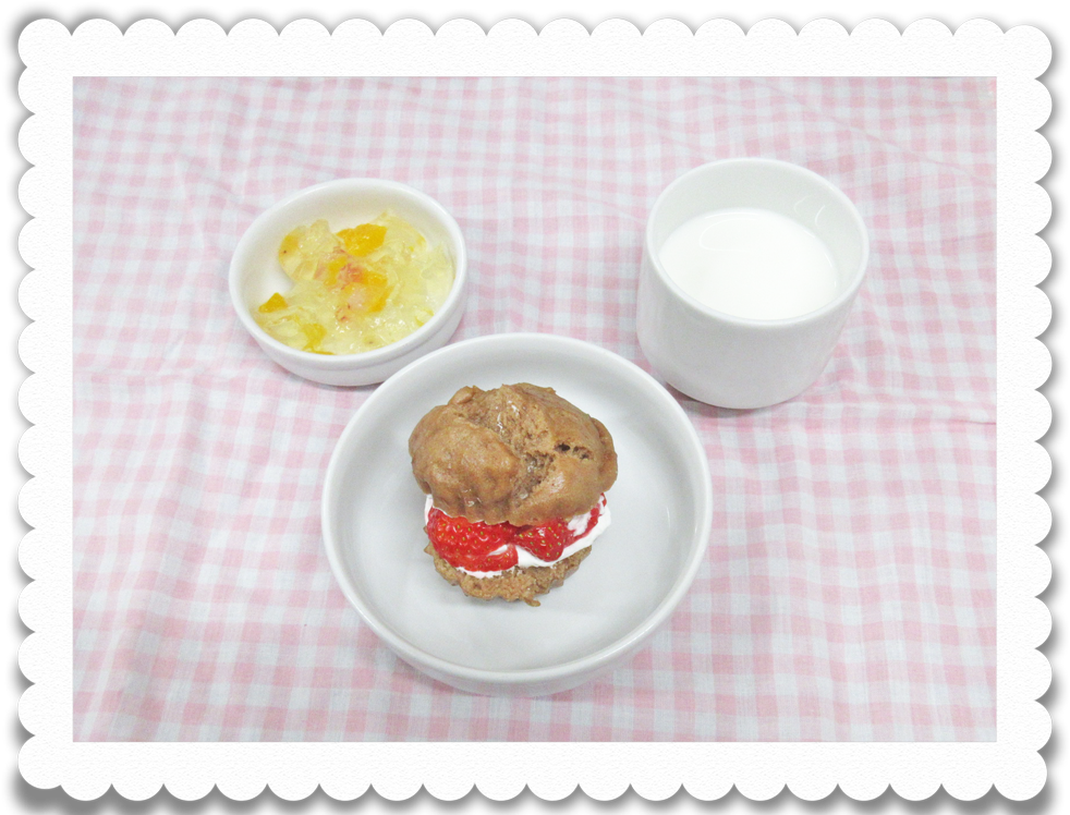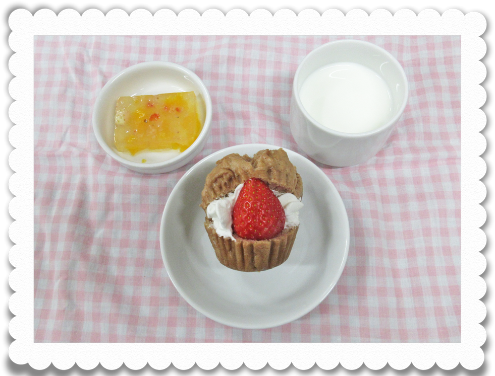 【幼児おやつ】 牛乳、クリスマスケーキ、フルーツゼリー