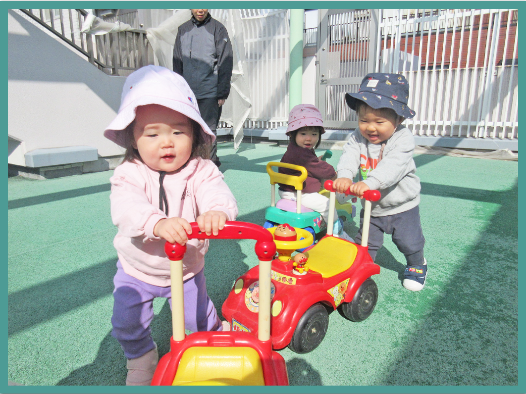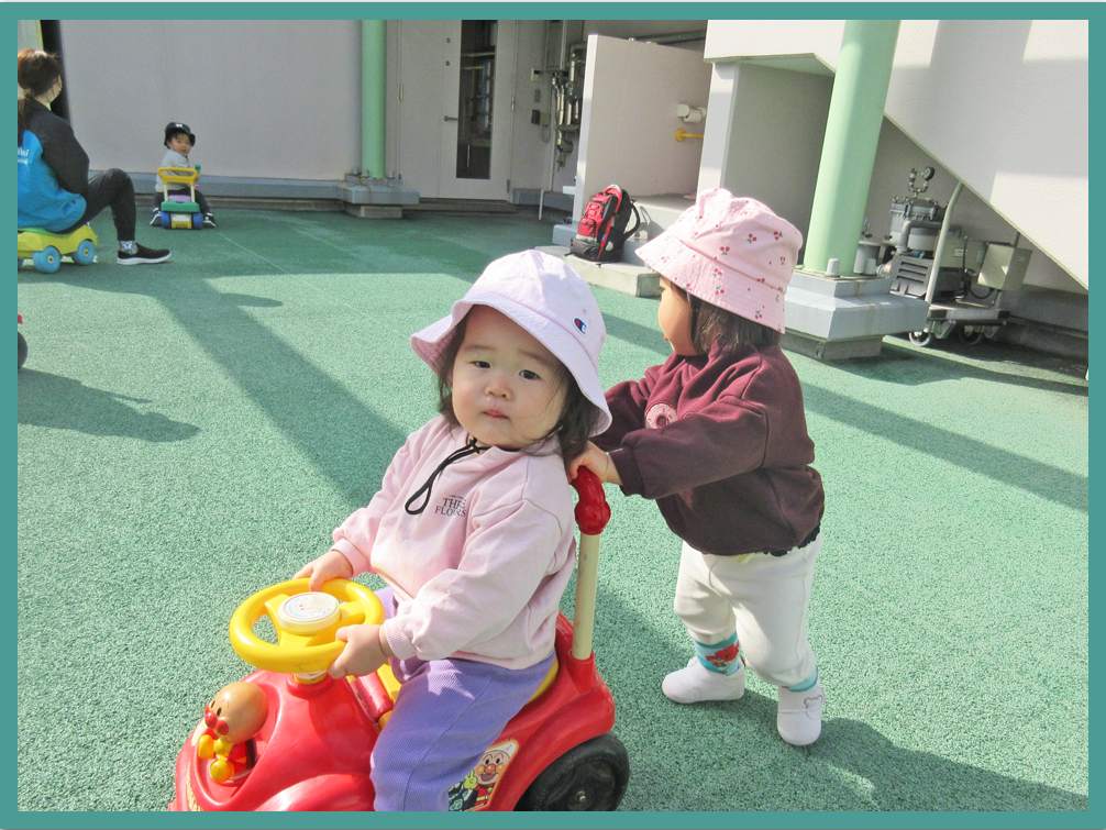 0歳児 屋上(コンビカー)遊び