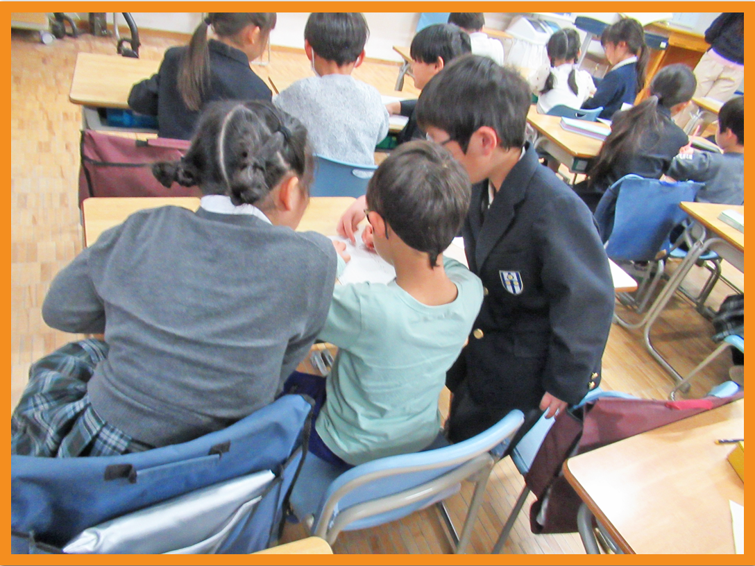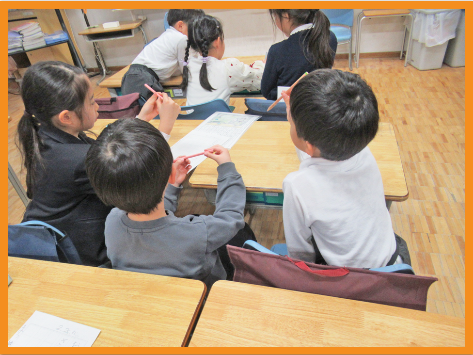 いざ1年生の教室へ!司会進行もすべて1年生がしてくれ、交流会が始まりました。まず席に座らせてもらい、鉛筆の持ち方から教えてもらい、自分の名前の書き順も教えてもらいました。お兄さんお姉さんはなんと赤鉛筆で丸付けもしてくれました。