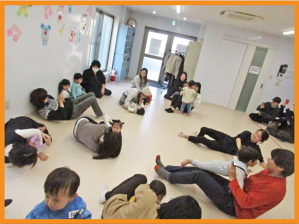 最後の親子体操は触れ合いをテーマに行いました。ギューと抱き着いたり、手を繋いだりこどもたちの笑顔はキラキラしていました。