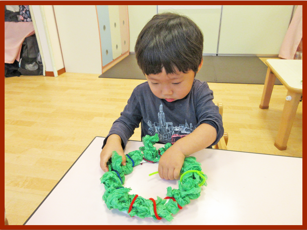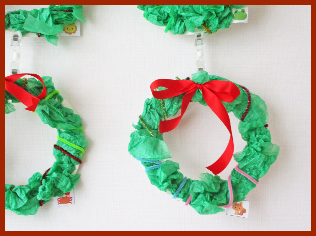 クリスマス製作で、リースを作りました。