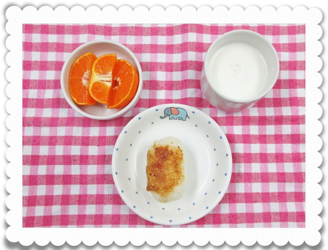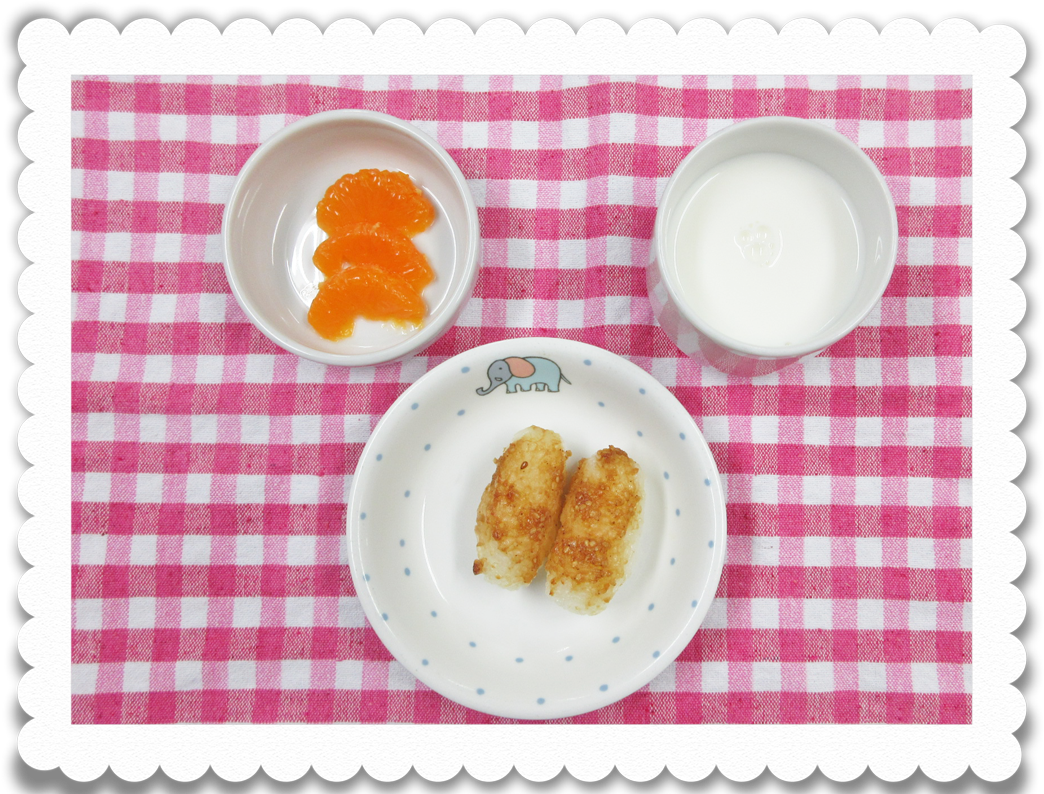 午前食:ミルクパン粥、焼きつくねのケチャップ煮、ポテトあえ、ベジタブルスープ