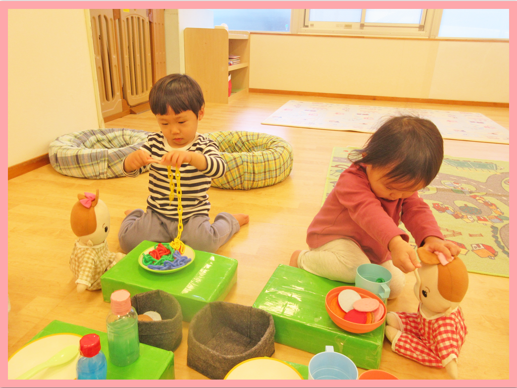 お人形のお世話も大好きで、ごはんをあげたり、飲み物を飲ませてあげたりと楽しんでいます。