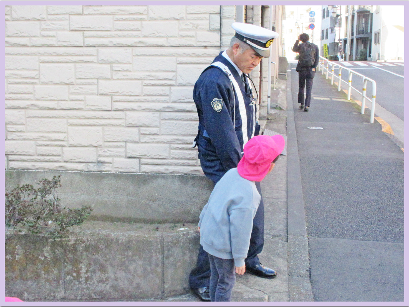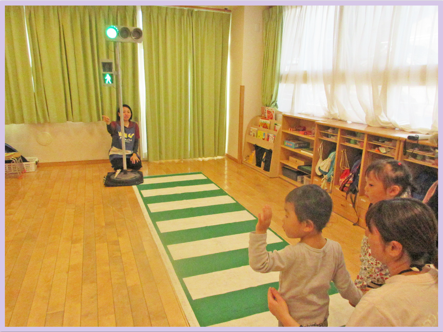 5歳児は、戸外に出て、交通ルールについて、ご指導いただきました。就学に向けて貴重な体験が出来ました。