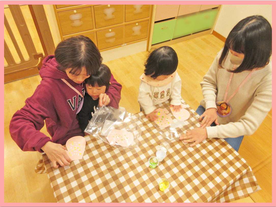 うみ組の保護者会を1月28日に行いました。保護者の方が保育室に入ってくると不思議そうにしながらも、嬉しそうな表情を見せていました。保護者会では製作やふれあい遊びなど、こどもたちと触れ合う時間も設け、素敵なひと時となりました。