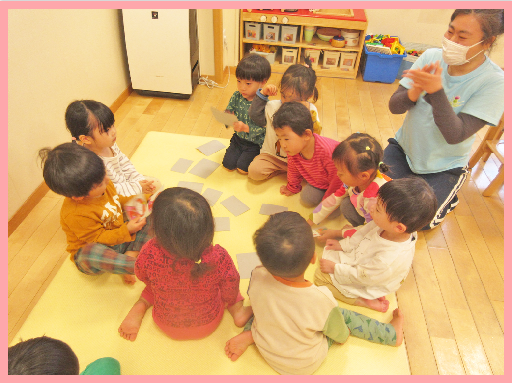 2歳児クラスは、ひな祭りに関するイラストを使って、神経衰弱を行いました。