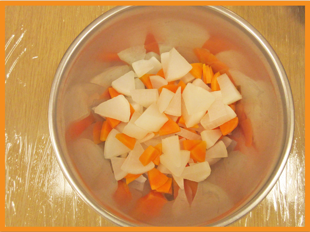 今回のみそ汁の具材は、大根・人参・小松菜を入れました。