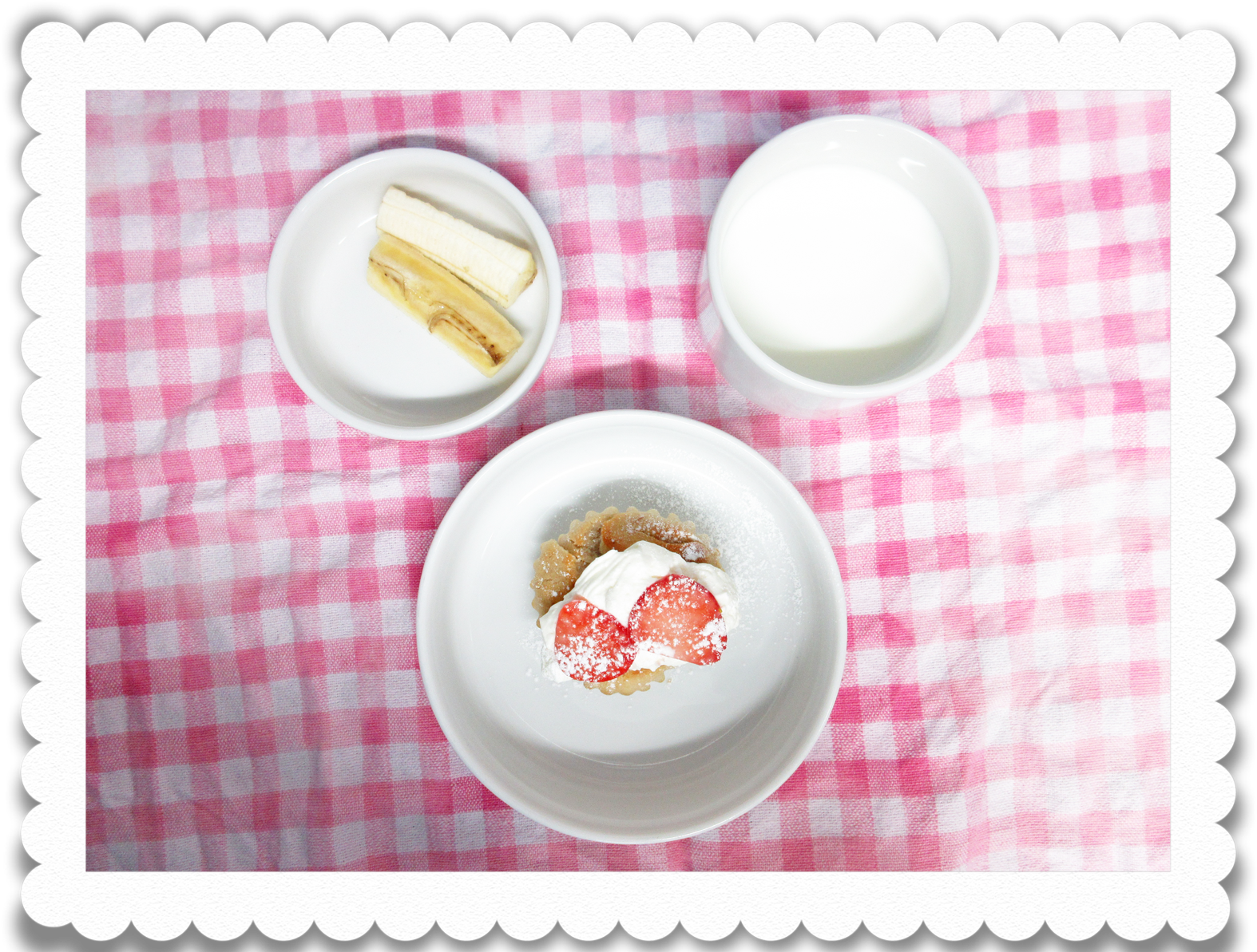 【幼児おやつ】牛乳、クリスマスケーキ、果物