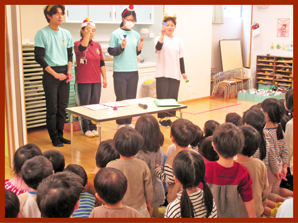 幼児クラスは、クリスマスの飾りをみんなに紹介しました