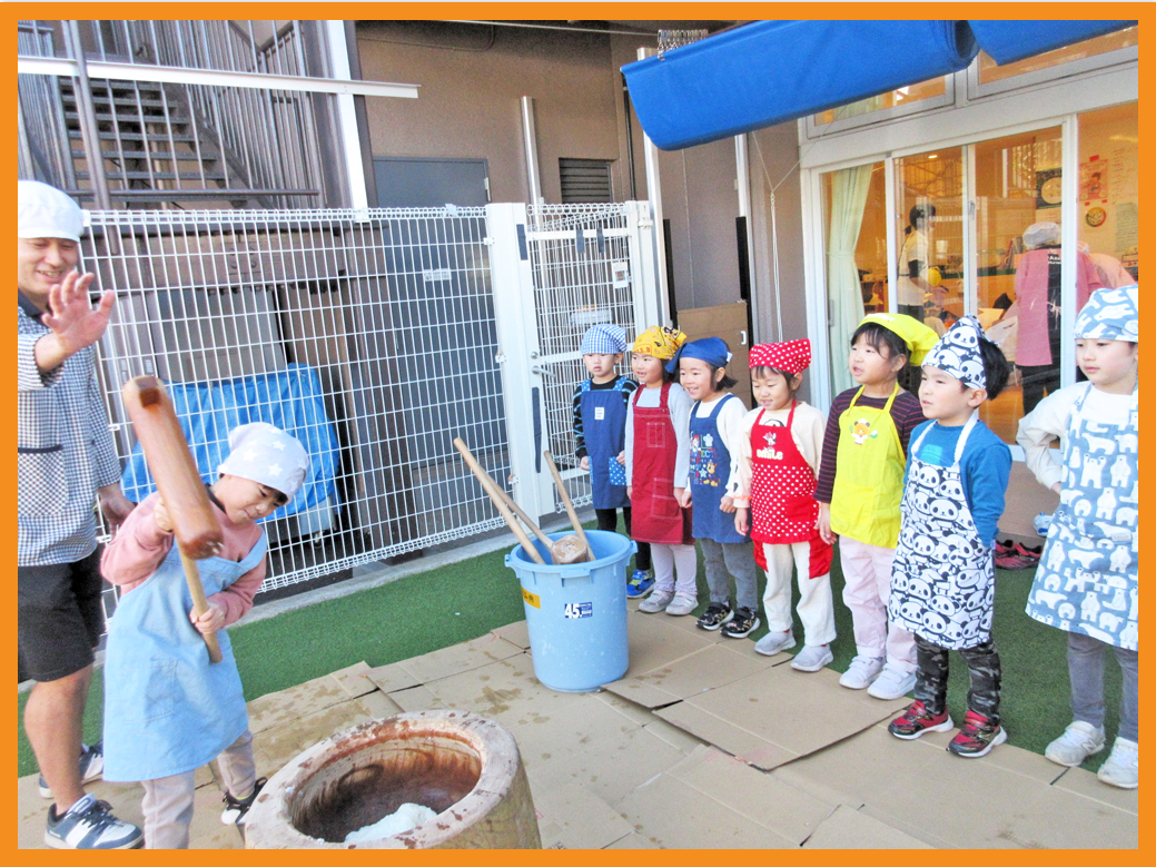 5歳児クラスのお餅つき