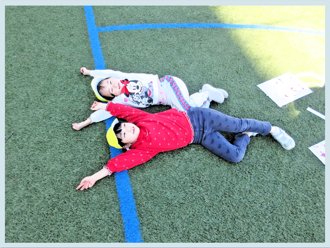 あちこちで糸がからまったり、たくさん走って「あーつかれたー」と寝転んだりしていました
