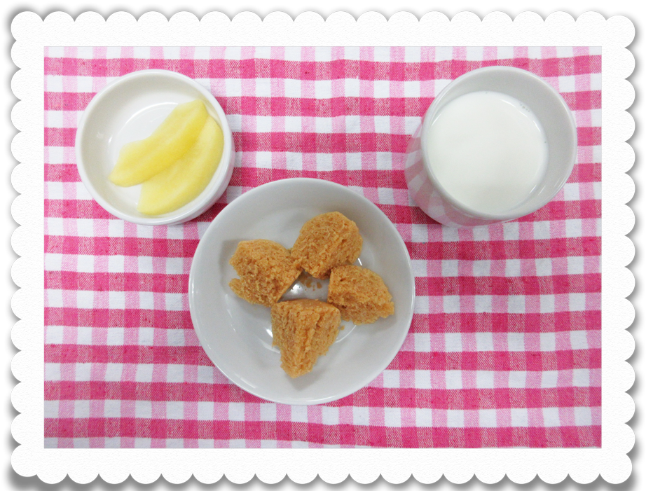 【幼児おやつ】牛乳、きな粉蒸しパン、果物
