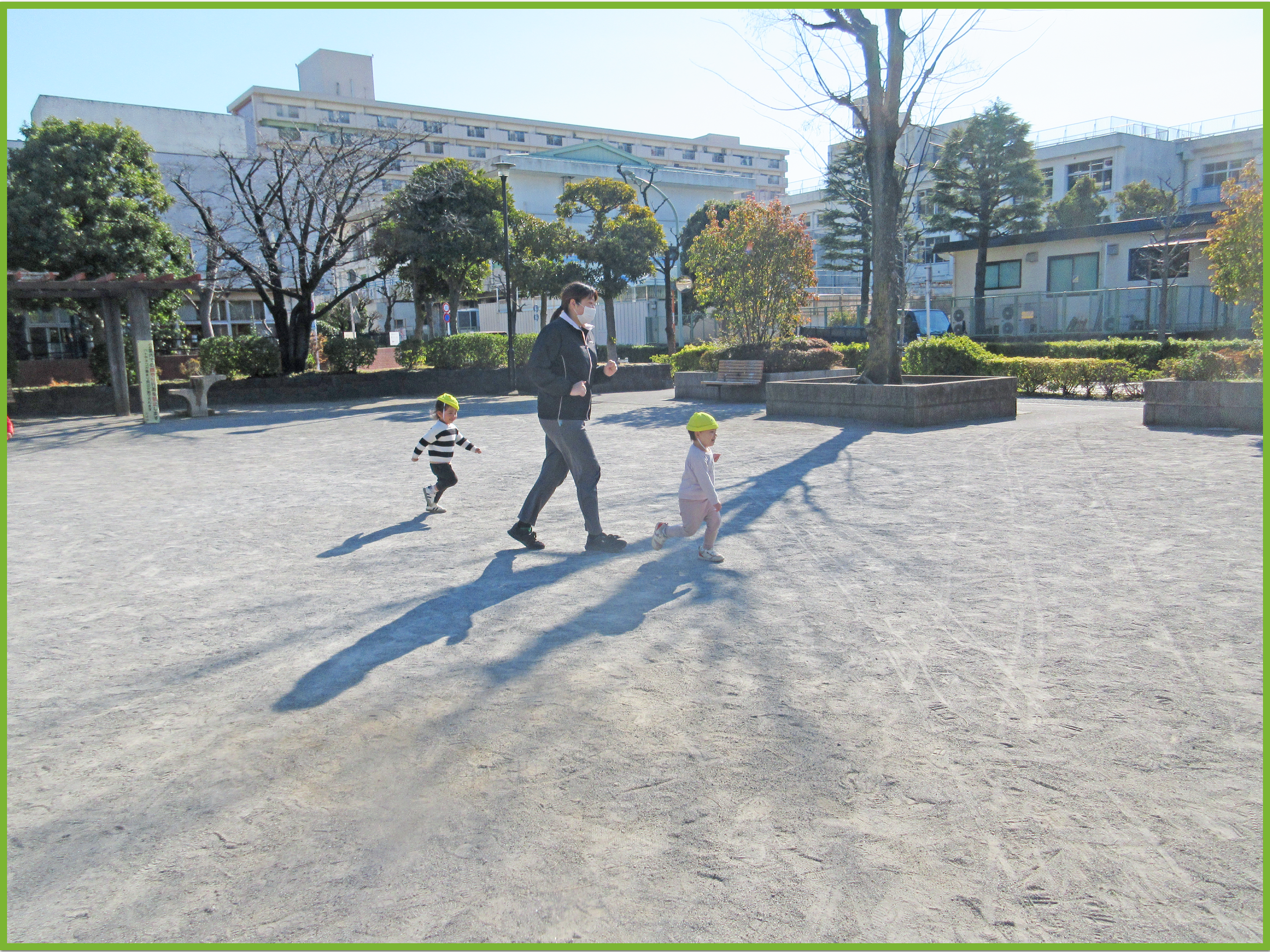 今日は、東一公園で追いかけっこやかくれんぼをしました。