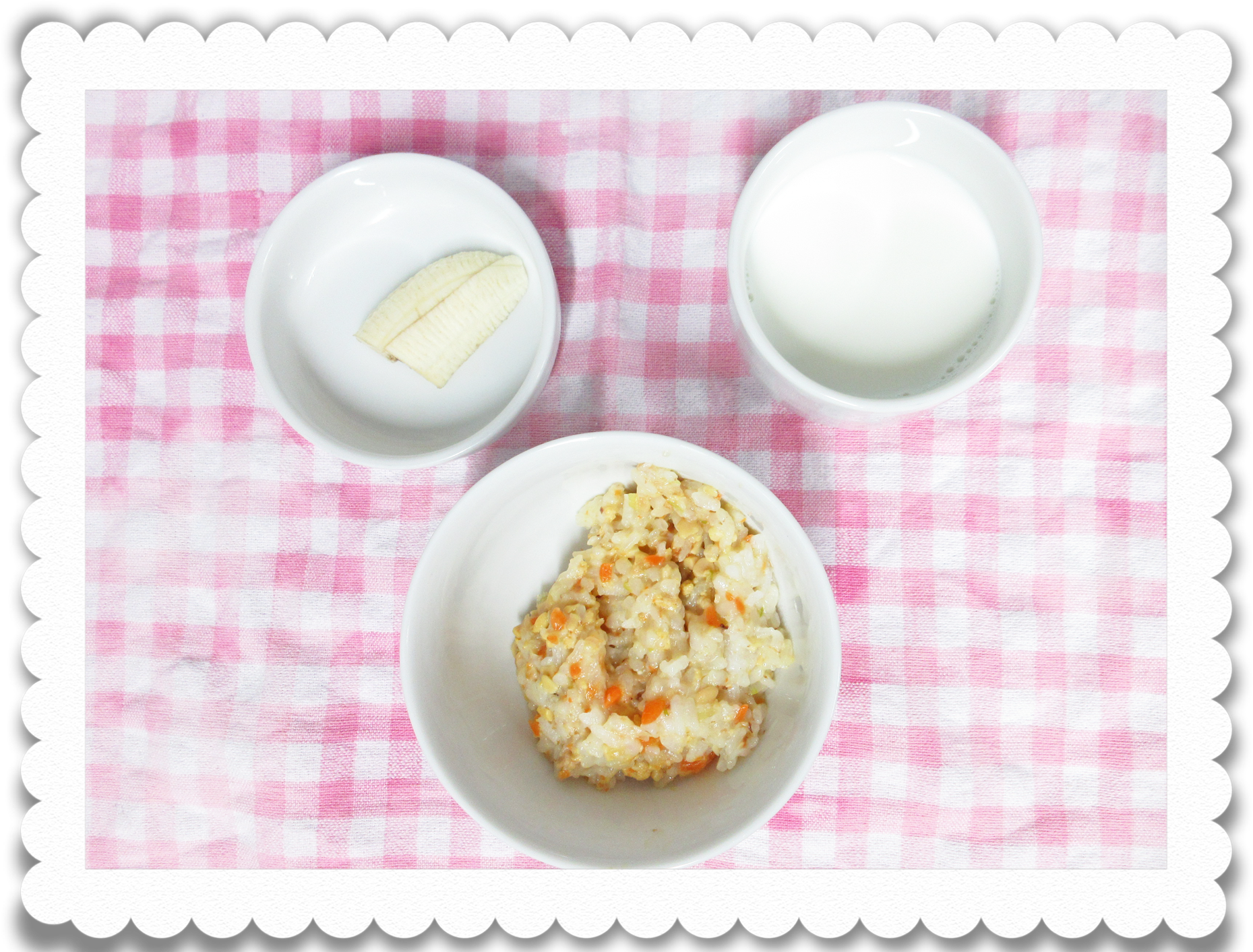 【幼児おやつ】牛乳、納豆チャーハン、果物