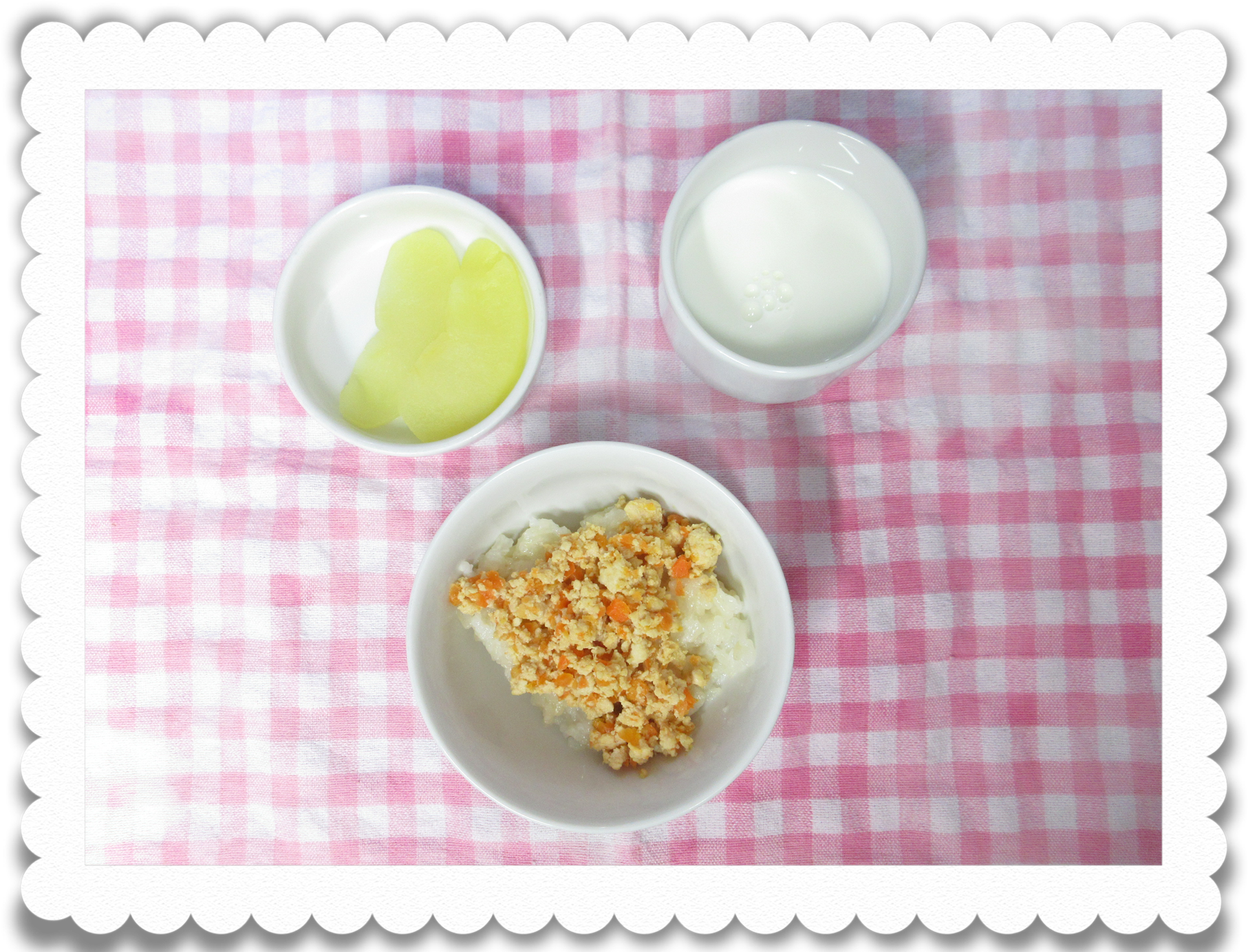 【幼児おやつ】牛乳、そぼろご飯、果物