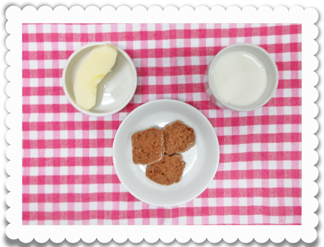 【幼児おやつ】牛乳、ココアクッキー、果物